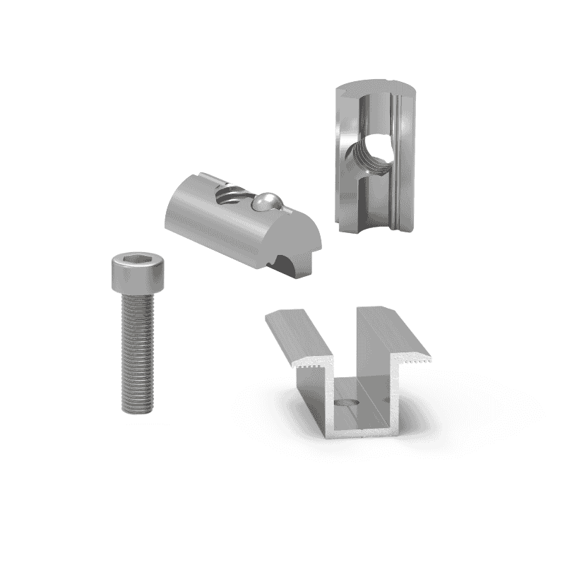 Clema dublă este utilizată pentru fixarea panourilor fotovoltaice între ele, pe șina Profil Tip H 40×40 mm. Asigură o prindere sigură și menține alinierea corectă a panourilor.