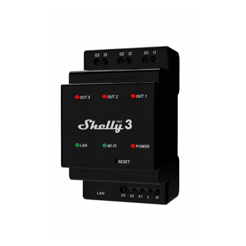 Releu Smart Profesional 3 Canale, DIN, LAN + Wi-Fi, 16A, Shelly Pro 3