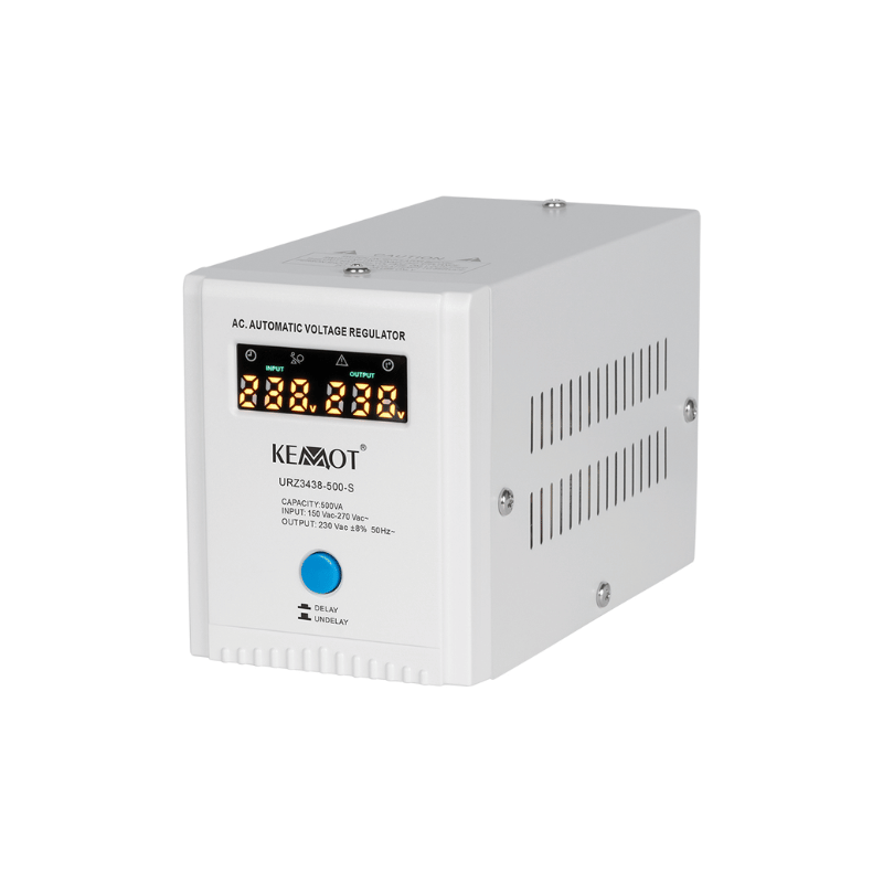 Daca ai nevoie de un stabilizator de tensiune pentru dispozitive cu un curent de pornire instantaneu mare, alege un model echipat cu functia de intarziere la pornire DELAY. KEMOT SER-500-S a fost echipat cu un buton de intarziere la pornire DELAY in intervalul de la 6 la 180 de secunde, care va reduce riscul de deteriorare atunci cand dispozitivele conectate la acesta au un curent de pornire instantaneu mare. In plus, stabilizatorul SER-500-S are protectie impotriva tensiunii prea inalte sau prea scazute, suprasarcina, supraincalzire si scurtcircuit.